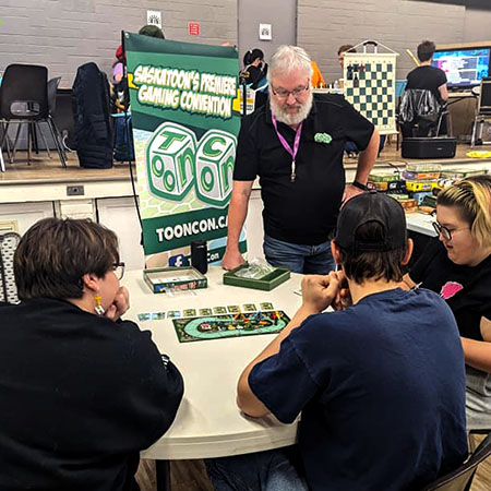 In addition to ToonCon, we encourage people to play year-round by hosting game nights in local eateries and supporting small one-off events with our time, expertise, and occasionally games to play or prizes. After all, if we can get more people playing games, we have more people to play games with!